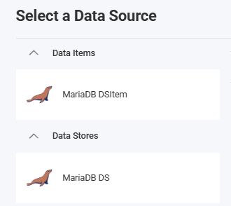 When the application runs, create a new Visualization and you will see the newly created MariaDB data source item listed in the "Select a Data Source" dialog.